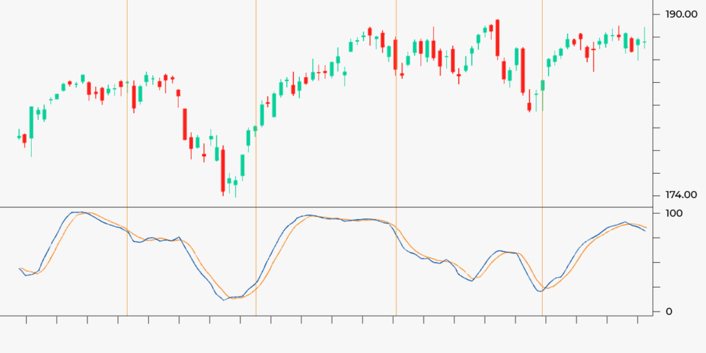 Buy-and-sell loops shape how the market moves, and relative strength indicators and stochastics (14,7,3) are used to identify these movements. Usually, these loops climax at oversold or overbought levels before reversing course, with both indicator bands crossing over. Contrary to what you may predict, cycle alterations do not often result in an increase or decrease in asset price. Bearish or bullish turns, rather, denote times when sellers or buyers are in charge of the ticker tapes. The price change is still influenced by market variables such as momentum, volume, and others.