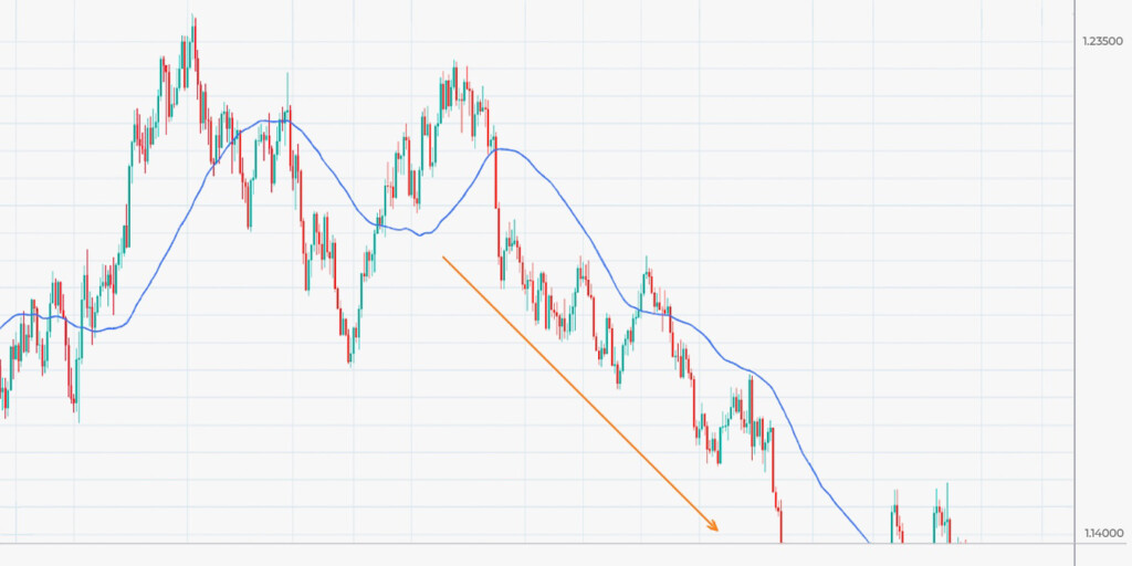 As soon as the MA changes its location regarding candlesticks, it’s a sign of a trend reversal.