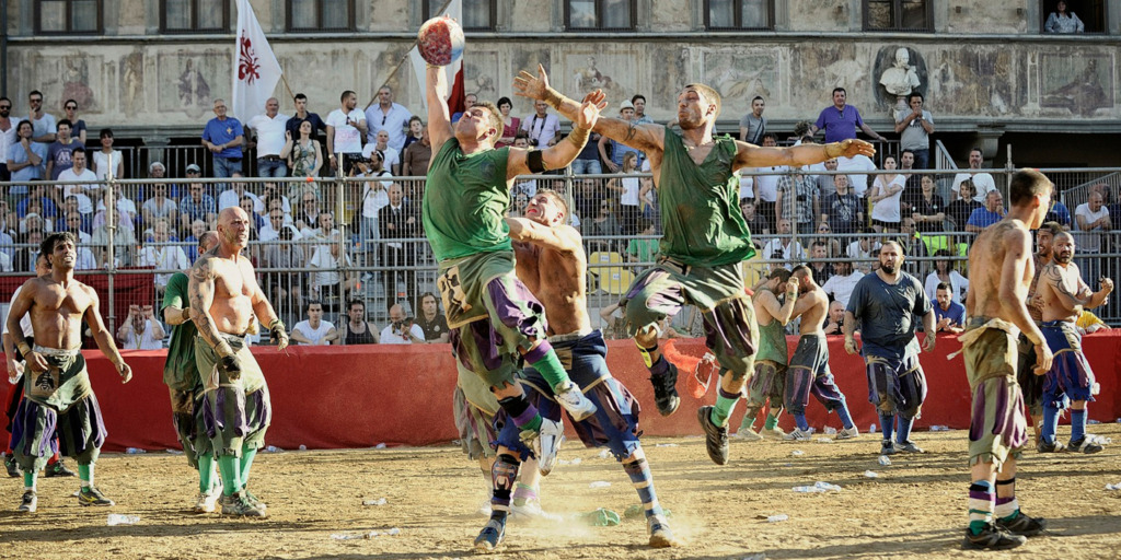 कैल्सियो स्टोरिको फियोरेंटिनो ऐसा कुछ नहीं है जिसे आप स्पोर्ट्स टीवी चैनल पर लापरवाही से कर सकते हैं। यह फुटबॉल, रग्बी और बड़े समय की कुश्ती का एक संयोजन है जो 16 वीं शताब्दी के फ्लोरेंस में वापस आता है। शहर के ऐतिहासिक पड़ोस का प्रतिनिधित्व करने वाली टीमें हैं, और सभी खिलाड़ी ऐतिहासिक वेशभूषा में हैं।