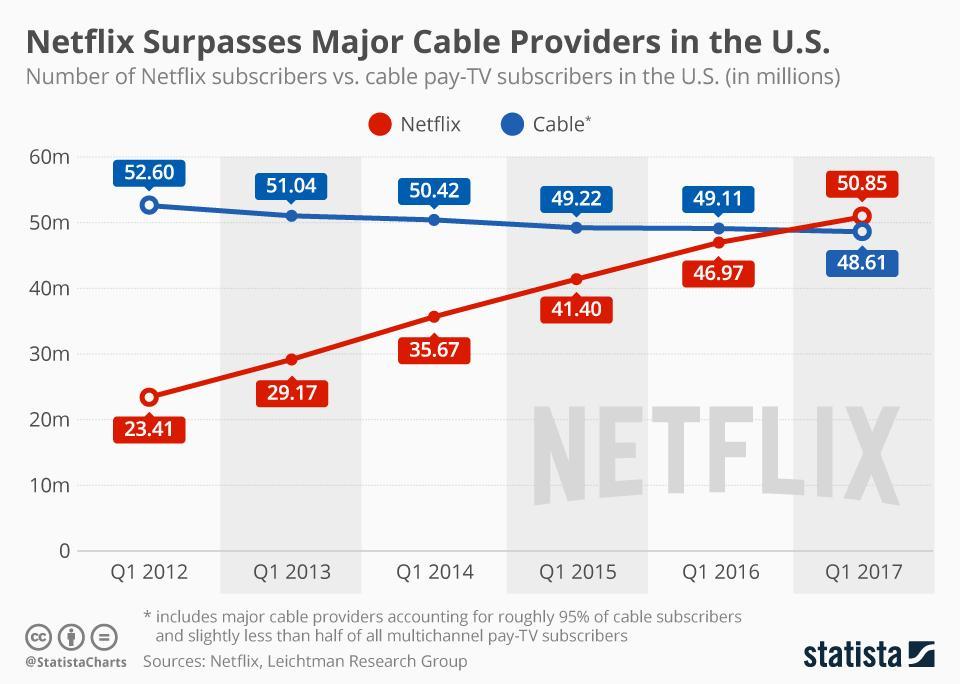 In the first quarter of 2017, Netflix passed a major milestone. There were more Americans subscribed to the popular streaming service than there were viewers of the largest cable providers in the country. The milestone has long been expected, but it still was a notable achievement.