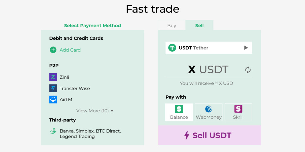 1. Deposit with your fiat (USD, euro, etc.) via a bank card or other payment method and buy cryptocurrency.