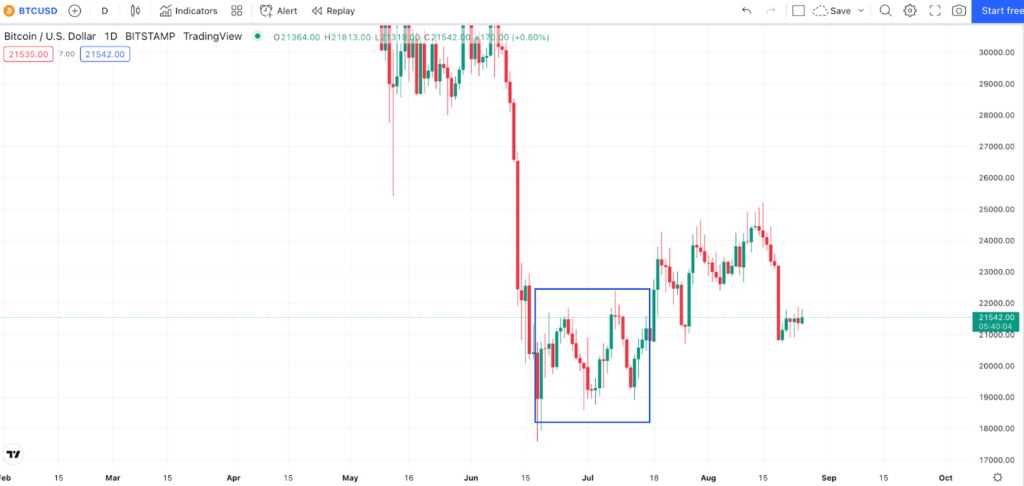 O mercado de criptomoedas é altamente volátil. Portanto, mais padrões de velas aparecem nele do que em mercados mais estáveis. Seu desafio é ler seus sinais corretamente e distinguir os sinais falsos dos reais.
