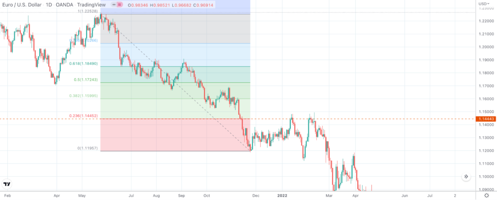 Os pontos mais importantes são 23,6%, 38,2%, 61,8% e 78,6%. O nível de 50% é um limite psicológico.