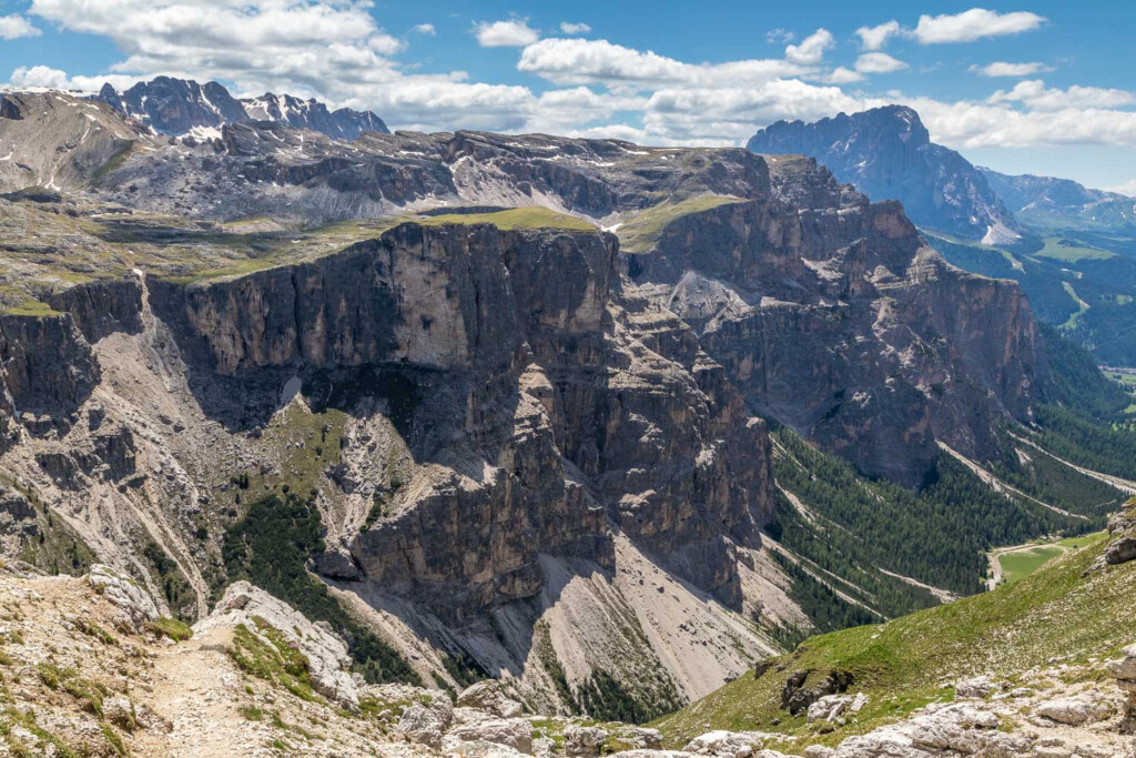 The Puez-Odle Altopiano trail is a hiking trail located in the Dolomites region of Italy. The trail is approximately 25 km (15.5 miles) long and it takes on average 8-10 hours to complete. The trail starts from the village of Pedraces and it goes through a beautiful alpine landscape, passing by the Puez and Odle mountain ranges and offering breathtaking views of the unique landscape characterized by the typical peaks called “Dolomiti”.