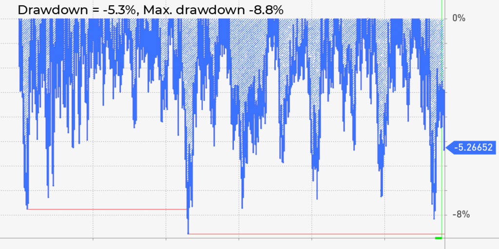 Bu test stratejisinin bitiş sermayesi 2.107.433$’dır. Bu testten çıkarılan sonuç, fiyat hareketi ticaretinin karlılığının yatırımcıların planına ve yöntemin ne kadar dikkatli bir şekilde yürütüldüğüne bağlı olduğudur.