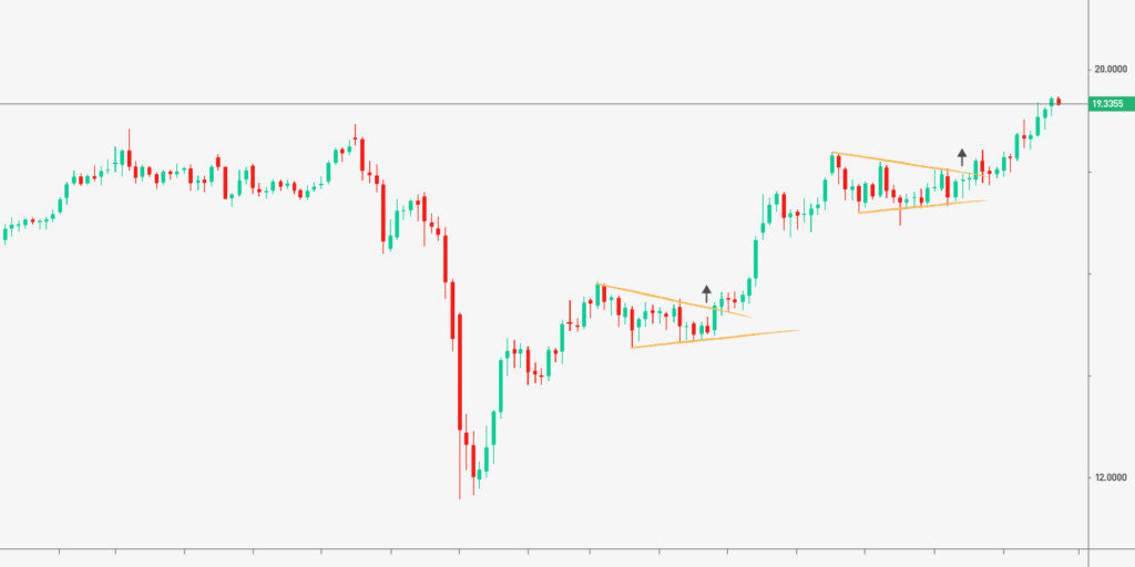 Grafik, bir fiyat eylemi devam modelini temsil eder