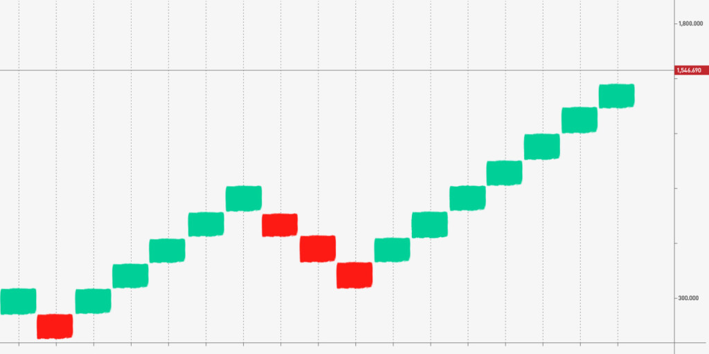 Renko grafiği bir trendde aynı rengi koruyorsa, yatırımcılar bunu takas etmelidir. Ama tersine dönerse, o zaman bir çıkış sinyali olabilir.