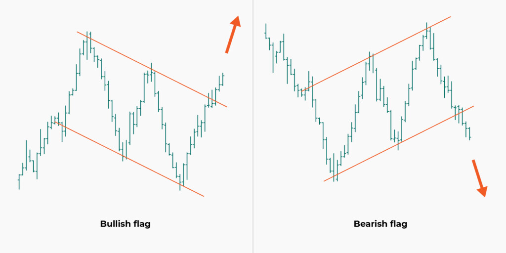 Bu formasyonları, grafik üzerinde direğe asılmış bayrağı andırdığından bayrak adını almıştır. Her iki formasyonda piyasada yer alanların genel trende karşıt yönde hareket ettiğini ve biriktiğini gösterir. Piyasanın, fiyatı genel trendin yönüne yönlendirebilecek faktörleri değerlendirmek için zaman gerektiren bir konsolidasyon dönemi olduğu söylenir.