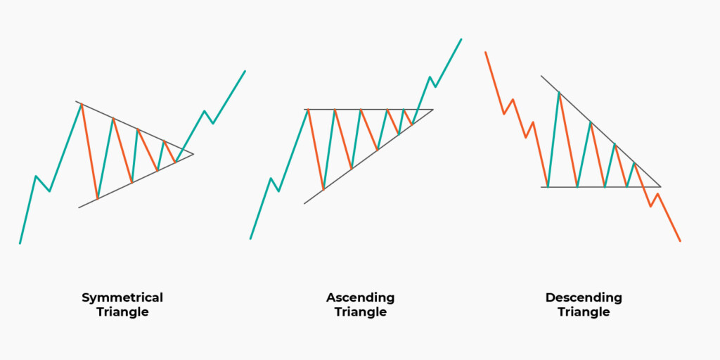 2. Simetrik, düşen ve yükselen üçgen (ascending, descending, symmetrical triangle)