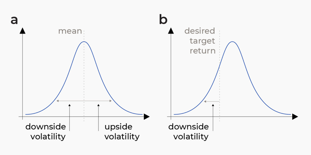 Diğer ölçütlerden farklı olarak, Sortino oranı ortalama kazançtan yapılan tüm sapmalara değil, sadece negatif kazanca odaklanır. Dolayısı ile bu metrik aşağı yönlü riski temsil eder, yani kayıplara neden olan her bir risk birimi için ne kadar ek kazanç elde edildiğini gösterir.