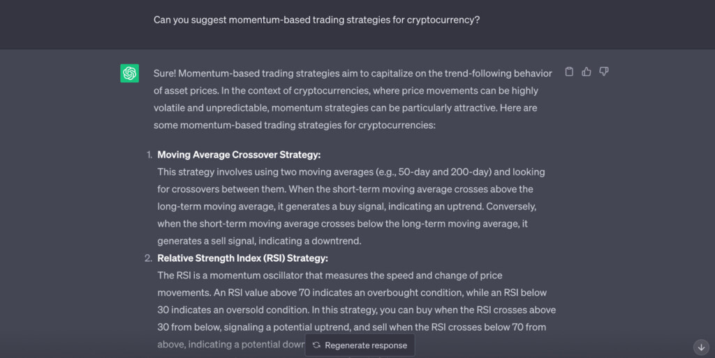 • İyi istek: Kripto para birimi için momentuma dayalı işlem stratejileri önerebilir misin?