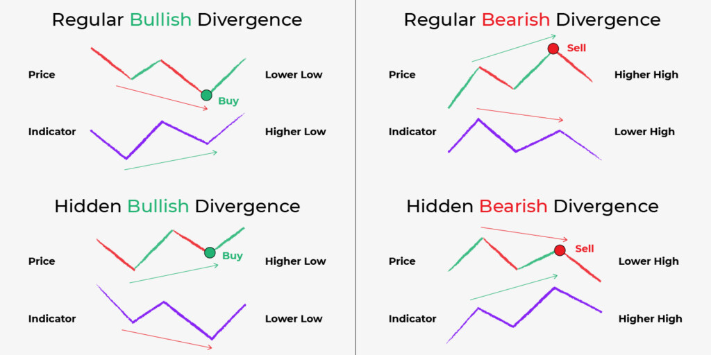 - Sapma veya Ayrışma (Divergence): Dört sapma türü vardır. Aşağıdaki grafiklerde bunları görebilirsiniz (3).