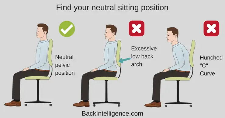Çalışırken oturuyorsanız dizlerinizi kalçalarınıza paralel tutmaya çalışın. Bu pozisyon omurganızın nötr bir şekilde durmasına yardımcı olur. Aşırı alçak bir sandalyede oturursanız dizleriniz kalçalarınızdan yüksekte kalır. Aynı şekilde yüksek bir sandalyede oturursanız kalçalarınızı dizlerinizden çok daha yüksekte kalır.