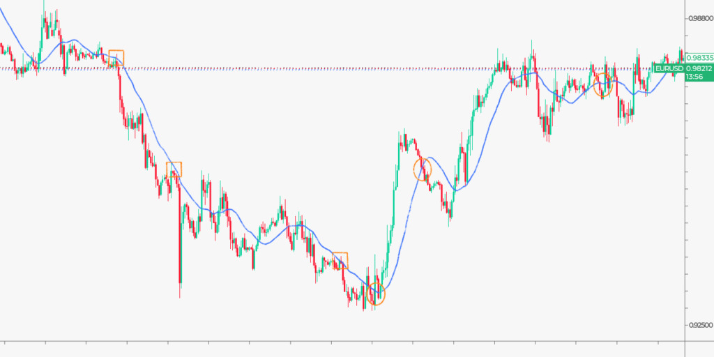 Bu, fiyatın SMA ile ilgili yönünü değiştirdikten sonra fiyatın yeni bir trend oluşturmasını bekleyebileceğiniz anlamına gelir.