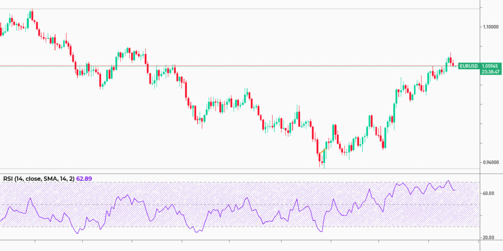 İndikatör, 0-100 aralığında hareket eden bir çizgiden oluşur. Anahtar seviyeler 30 ve 70’tir. RSI 70’in üzerine çıktığında, bir varlık aşırı satın alınmıştır, bu nedenle piyasa yakında geri dönebilir. RSI 30’un altına düştüğünde ise varlığın aşırı satıldığı anlaşılır. Yani fiyatı yakında yeniden yükselebilir.