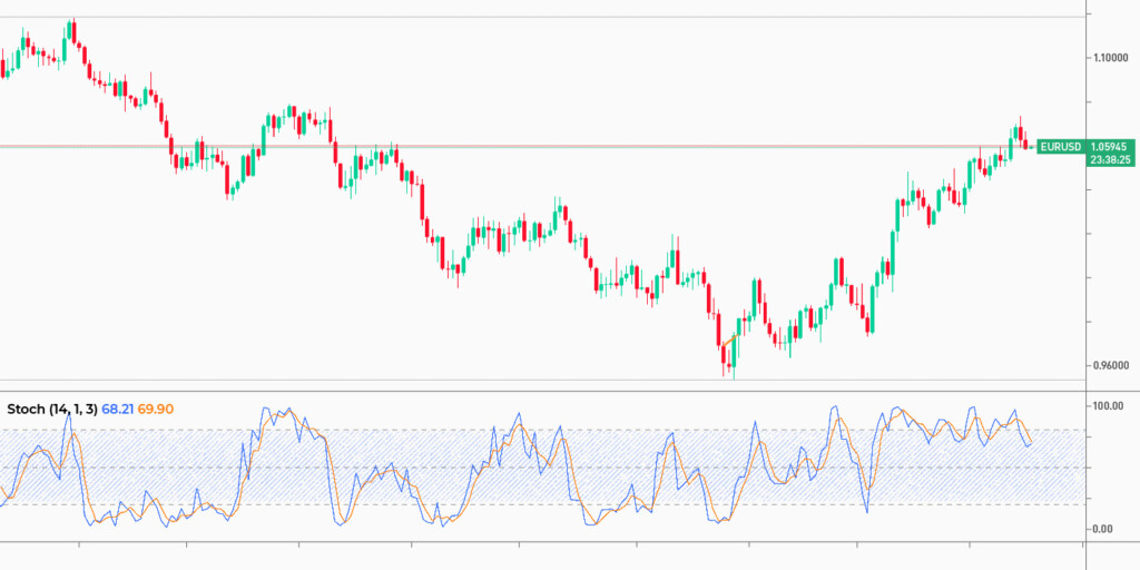 RSI gibi, stokastik osilatör de bir varlığın fiyatının çok yüksek veya çok düşük olduğu koşulları yansıtır. Stokastik’in temel seviyeleri 20 ve 80’dir. Osilatör 20’nin altına düştüğünde, bir varlık aşırı satılır ve fiyatın yakında yükselebileceğini gösterir. Osilatör 80’in üzerine çıktığında, bir varlık aşırı satın alınır yani fiyat hızla düşebilir.