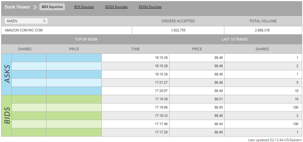 Farklı borsa ve işlem platformlarının farklı emir defteri görünümlerine sahip olabileceğini not ediniz. İşte bunlardan bir tanesi; Cboe.